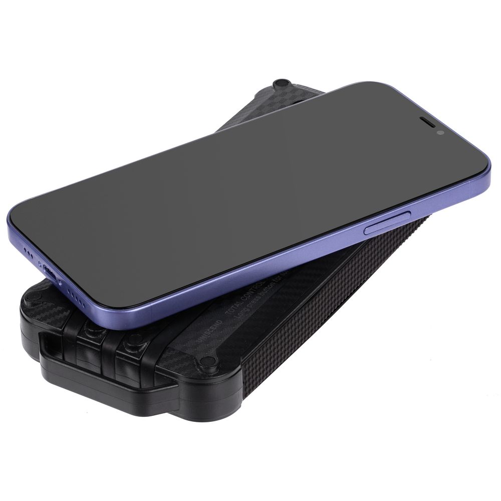 Прорезиненные вставки и рисунок на корпусе с имитацией карбона добавляют хорошей агрессивности внешнему виду аккумулятора — сразу видно, что его хозяин готов к приключениям.